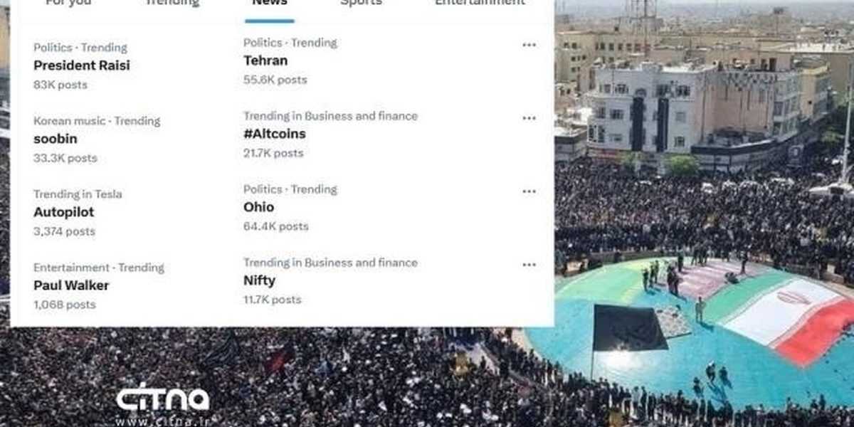 سیتنا نوشت: به دنبال وقوع سانحه سقوط بالگرد که منجر به شهادت سیدابراهیم رئیسی، رئیس جمهور ایران و همراهان شد، انتشار پستهای مرتبط با این حادثه طی روزهای اخیر در شبکههای اجتماعی خارجی شدت گرفته است، در همین حال و به دنبال تشییع باشکوه پیکر شهید جمهور و یارانش در تهران پس از اقامه نماز توسط رهبر معظم انقلاب در روز گذشته چهارشنبه، طی ساعات اخیر واژه «تهران» ترند اول بخش اخبار توئیتر شد و همچنان واژه «رئیس جمهور رئیسی» در بین ترندهای توئیتر در ردههای بالا قرار دارد.