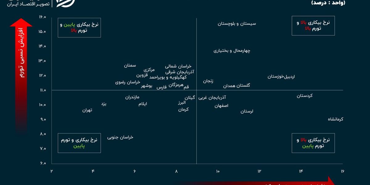نبرد بیکاری و تورم در ایران؛ وضعیت قرمز در 6 استان/استانهای سیستان و بلوچستان و چهارمحال و بختیاری با نرخ تورم و بیکاری بالا
