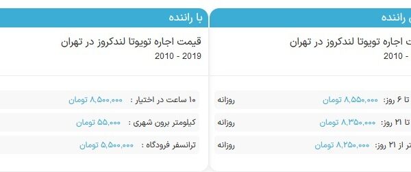 [ad_1] روزگار خودرو نوشت: اگر هزینه اجاره لندکروز را جست و جو کنید با مبالغ عجیب و غریبی رو به رو میشوید. هزینه اجاره این خودرو بدون راننده برای یک روز حدود ۸ میلیون و ۵۵۰ هزار تومان است. اجاره…